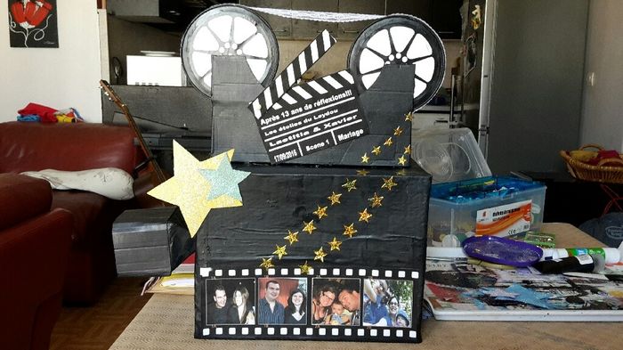 Coucou les futurs Mme et Mr, Aujourd'hui je viens enfin de finir ma boîte à sousous :-) entre notre petit dernier de 3 mois, notre grand de 4 ans et les préparatifs du mariage j ai eu beaucoup de mal à la terminer lol Notre thème étant le cinéma, on...