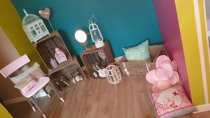 Il y a 3480 joursMes pancartes de chaises et la guirlande de fleurs.Ensuite le mr et mrs en bois.Puis mon stylo en bois pour livre d'or avec nos initiale.Mes petits bonbons mr et mrs et just married aux couleurs du mariage.Et mes petites serviettes pour la table...