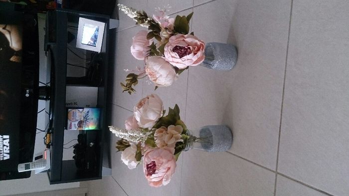 Coucou tout le monde,Voilà j'ai voulu tester mes petits vases que j'ai créé pour le vin d'honneur avec les fleurs. Et je suis plutôt contente du résultat.:-) (Désolé pour les photos, elles ne veulent pas se mettre comme il faut. Grrrr)