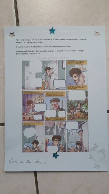 Bonjour!Qui parmi vous propose comme animation de remplir une bd sur les mariés ? Je viens de finir la mienne,qu en pensez vous?