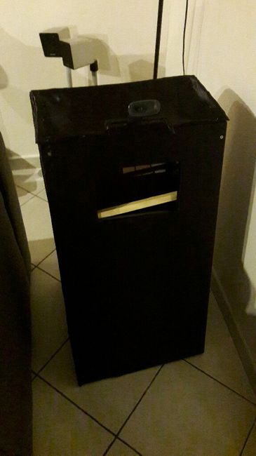 Bonjour !!!Avez vous prévu un coin photobooth? Qui le réalise elle même ? Je voulais que chéri me fasse une cabine mais il avait une autre idée en tête. On a reçu les premiers morceaux hier,je pense que ça peut le faire en customisant un peu!un fond...