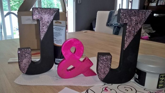 Elles ne sont pas terminées surtout le "&" car la 1ère couche de peinture n'est pas sèche. J'ajouterai sur le "&" des petits starss noir je pense, et après je verrai au fur et à mesure...Qu'est ce que vous en pensez? Si vous avez d'autres...