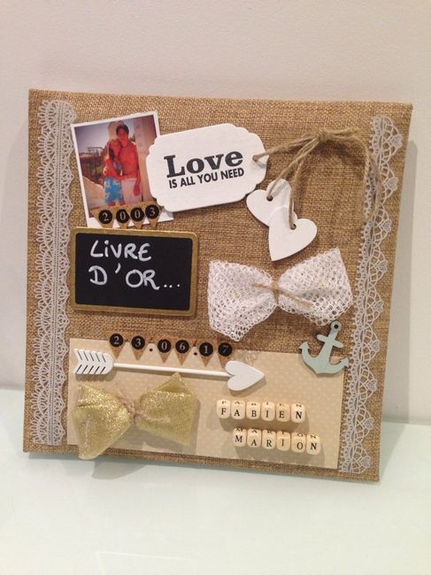 Hello !Tout est dans le titre, je cherche a personnaliser mon beau livre d'or acheté en toile de jute et à agrémenter un peu comme sur la photo ci dessous. J'aimerai bien voir les votre que vous avez personalisé pour voir ce que je peux acheter,...