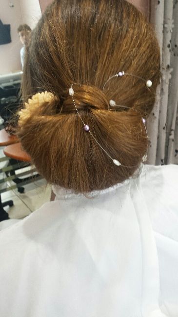 Coucou à tous, voilà j'ai fait mon essai coiffure il y a quelques jours et j'aimerais savoir ce que vous en pensez? A la place du truk tout moche que la coiffeuse à mis pour voir un peu ce que ça donnerai j'aurais une orchidée, et le voile sera placé...
