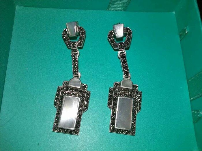 Je suis trop heureuse! J'ai trouvé les BO de mes rêves! Elles sont en argent, marcaisite et nacre. Très art deco, comme je le souhaitais. Et vous qu'en pensez vous? !