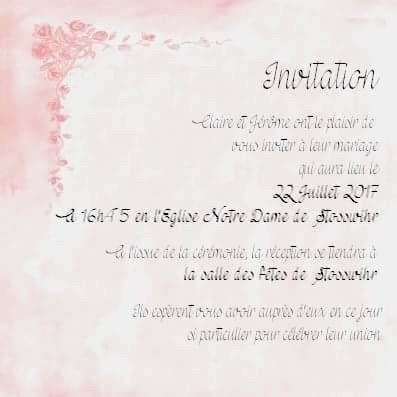 Bonsoir tout le monde Nous commençons à regarder un peu pour nos faires part et notamment les textes.A Avec chéri nous avons fais un "1er jet". Pouvez vous me donner vos avis ? (ne faites pas attention à la mise en page) Invitations mairie et vh Je...