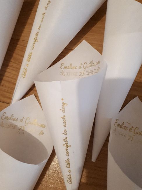 Voici l'avancée de ce dimanche des cornets à confettis pour la sortie de l'église. Nous avons pris le choix de ne pas en faire des tonnes (25 de chaque) vu que nous allons acheter quelques canons doré. Nous mettrons à l'intérieur des confettis blanc...