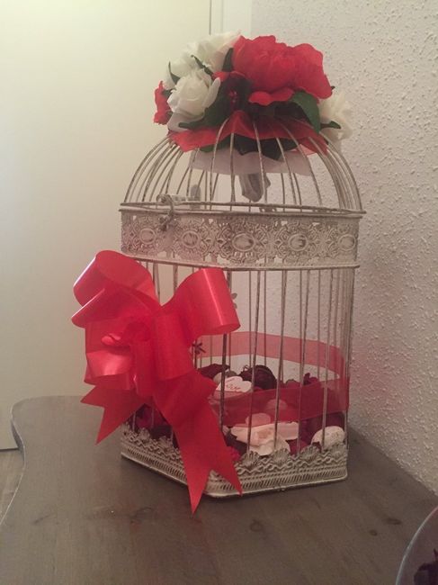 Voici notre urne "cage" finie. Qu'en pensez vous ? Il me reste à faire un coeur avec nos prénoms et la date. J'ai fait un essai sur papier, reste plus qu'a l'imprimer sur papier photo, découper et accrocher.