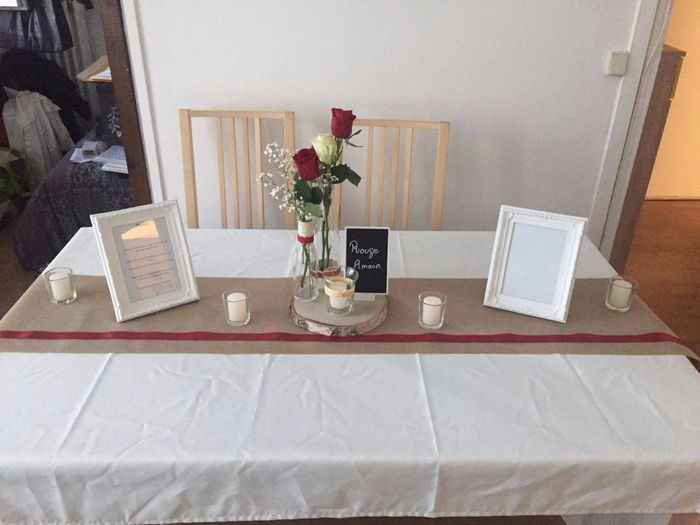 Il y a 3199 joursAprès des mois et des mois à me dire " il faut faire l'essai table"... Ça y est il est fait! Satisfaite du rendu. Vous en pensez quoi? A savoir qu'il manque des bouquets de gypso pour agrémenter mes pots en verre et que les fleurs sur les portes...