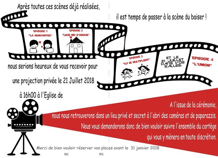 Salut les filles, Je vais bientôt commencé le livret de messe sur le thème du cinéma. Je suis à la recherche d'une idée d'impression pour les livrets (image de couverture, couleur de papier ou autre). Vous trouverez une image du faire part, pour vous...