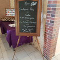 Il y a 3268 joursCa y est! C'est le grand jour. Nous avons pu Preparer notre salle hier et connu les premiers imprevus! Mais tout est en place. Je vous poste quelques photos, j'ai envie de les montrer a tout le monde mais je ne peux pas... isa, si ru passes par la ne...