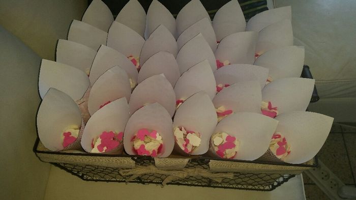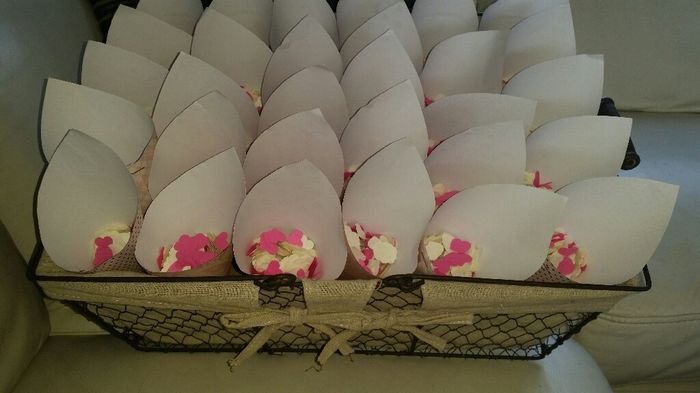 Voilà la suite ... après les confettis fait maison voici les cornets pour les confettis placés ds un joli panier pour donner aux invités à la fin de la cérémonie. Y a plus qu'à les remplir.