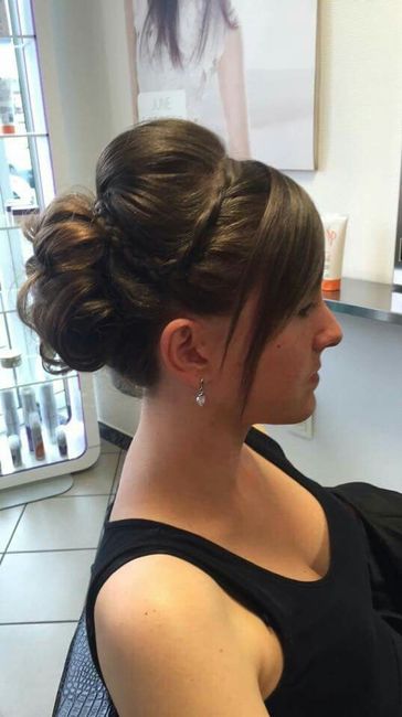 Bonjour!Je n'arrive pas à trouver un chignon. J ai uné robe bustier & des cheveux épais longs blonds.Je N aime pas mon essai. Je pense avoir interet à faire un chignon haut.Pouvez vous me montrer les votres?Merci!