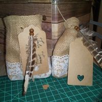 Il y a 3466 joursAller aujourd'hui on s'y remet!! Je fait des petites pochettes pour y mettre les dragées ou bonbons et petit cadeau pour les invités aller plus que 25!! Elles ne sont pas finies encore elle seront fermées avec de la ficelle plumes et perles de bois...