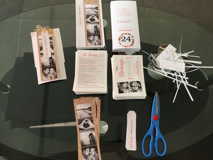Coucou les filles ! Un petit post pour avoir vous montrer nos faire part que l'on a fini hier et faits par nous meme !Notre thème c'est champêtre ! Je vous mets aussi une photo des cadeaux pour les invités : du chocolat. Pour chaque tablette on a...