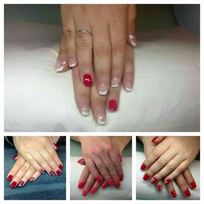 Bonjour les filles, Mon thème porte sur les couleurs rouge blanc et argenté. J'aurai des chaussures rouge, mon bouquet aura un peu de rouge et mes bijoux aussi. Je souhaite une french manucure, mais avec un petit (léger) côté original mais je n'ai...