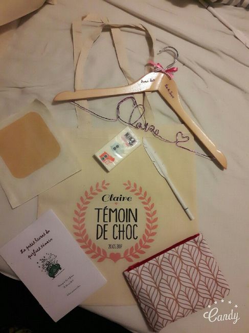 Voilà après un week-end mémorable pour nos enterrement de vie de célibataire j'ai offert à nos témoins en or leurs petits kits témoin ! Ils étaient ravis ! Et moi j'ai adoré les préparer !