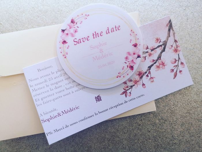 Bonjour !! Voici un aperçu de mes Save the date, le petit rond est un magnet à mettre sur le frigo, notre theme de mariage est le Japon ! 😊