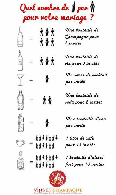Coucou les filles question boisson svp Au repas on est 60 le lendemain environ 50 et au vh aller 80/90 lol Au repas il y a 12 personnes qui boivent du crémant et il y a 10 enfants et 4/5 personnes qui le boivent pas d'alcool du tout Donc je...