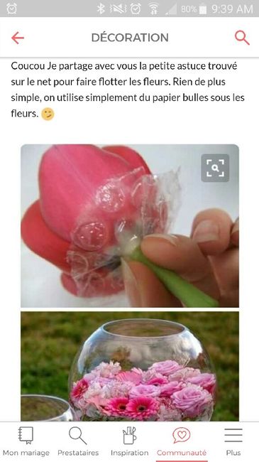 Coucou les filles, comment allez-vous.J'ai une question. Savez-vous si les boutons de roses en mousse flottent sur l'eau? Si oui, pas de risque si je prepare les centres de table la veille? J'avais trouvé des orchidées flottantes sur aliexpress mais...