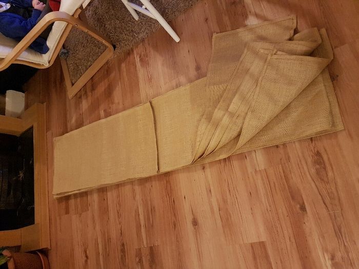 Coucou! Trop contente davoir terminé mes chemins de table en toile de jute fait avec ma petite machine a coudre!!Je me motive bientôt pour faire une deco de table test!