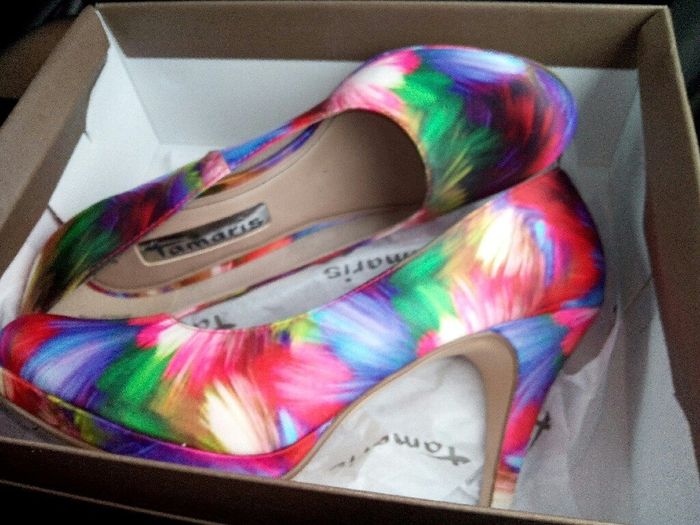 Bonjour à toutes ! Avez vous choisi d'apporter une touche de couleur à votre tenue le jour J avec des chaussures colorées ? Si oui, qu'elle sera la couleur ? Et avez vous des photos ? Pour ma part, j'ai choisi de porter des chaussures rouges... et...