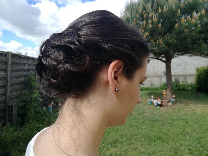 Voilà j'ai fait mon premier essai coiffure ce week-end et suis plutôt satisfaite du résultat =) je ferai un balayage pour faire ressortir la tresse et le chignon sera plus net le jour j, il y aura également des fleurs dans la tresse et chignon. Qu'en...