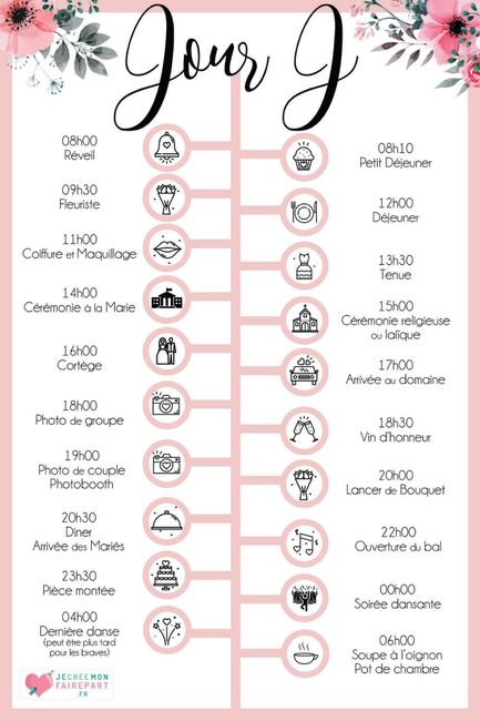 Bonjour la communauté, j’ai besoin d’un coup de main. Voilà je suis tomber sur une fiche planning d’un jour J et j’ai trouver l’idee génial. J’aimerais pouvoir en faire un personnalisée pour chacun de mes témoins et ceux d’en monsieur pour qu’ils oit...