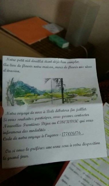 hé bien voilà après des semaines à réfléchir à mon texte de faire part, hier en 5min j'ai eu un tilt et nous avons réussi à nous mettre d'accord( même sur la couleur, la taille et le type d'écriture). je suis vraiment soulagée que notre duo soit...