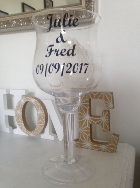 Coucou la communauté, voici notre vase pour la cérémonie laïque (ceremonie du sable). Vase acheté à action et sticker commandé via la page facebook de stick 842 (angy stick) je la recommande vivement