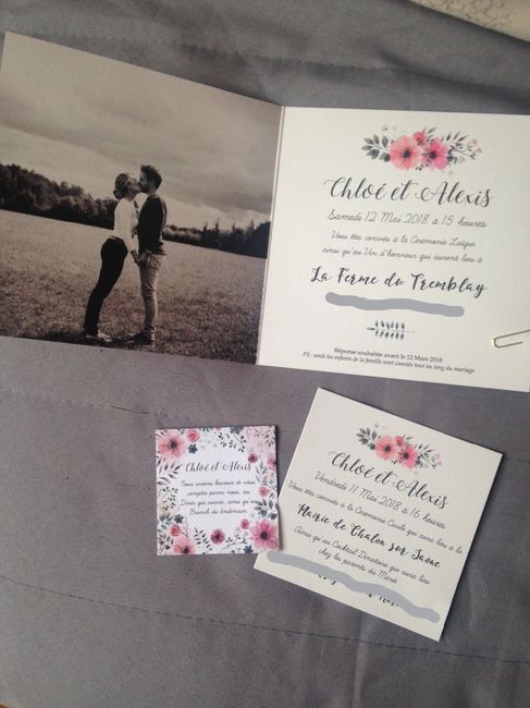 Et voilà nos faire parts sont tous envoyés ! Après avoir recherché sur des 10 aines de sites, je n'ai rien trouvé à mon goût ! J'ai donc créé moi-même mon faire-part grâce à des vecteurs, des polices d'écriture gratuites sous word et nos photos de...
