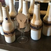 Il y a 3525 joursCc mes premiers test diy pendant la sieste de bébé, bouteilles de bière que j'ai bombées je vais sûrement rajouter des rubans et mettre d'autres étoiles pour cacher les coulures ? Et mon mariage est sur le thème du voyage alors Marque place...