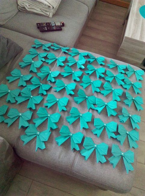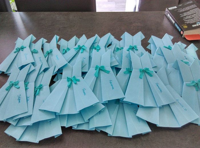 Bonsoir, j avance j avance dans mes marques nom robe pour les femmes noeud papillon pour les hommes et les fleurs en origami pour les tables 😁vous en pensez quoi ? Bonne soirée !