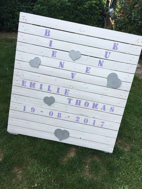 Coucou les filles une belle apres midi ensoleillée du coup avec belle maman on a fait le panneau de bienvenue! Je vous met une ptite foto. Sur le haut il y aura une guirlande de plumes blanches pour finir. Vos avis? Nous on est fière de notre tranail...