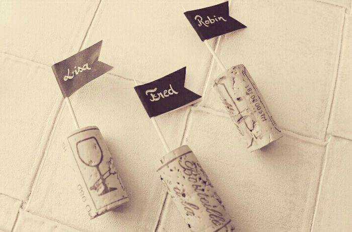 Voila ce que je souhaitais faite pour marque place. Le thème étant bleu turquoise et blanc je vais peindre une moitié de bouchon bleu l'autre blanc. Le petit drapeau sera blanc pour les femmes et bleu pour les hommes! Mais comme encore une fois c'est...