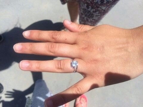 ma bague de fiançailles Demande en mariage à la plage de Gruissan Bisous les cheveux dans le vent