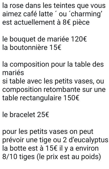 Bonjour tout le monde, J'ai une grosse interrogation. Nous avons été voir un fleuriste qui a nous a fait un devis via WhatsApp sans vraiment détaillée les fleurs et il manque des informations.. bin c'est la Toussaint ils doivent être en plein rush....
