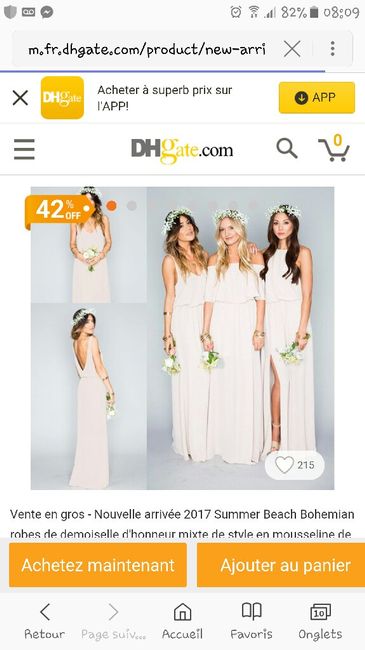 Bonjour, Je suis à la recherche de robes pour mes demoiselle d honneur.Avez vous des sites à me conseiller ? J aime assez le style de la photo qui irait avec mon mariage boheme.Maus à part aliexpress je n en trouve pas. Merci d avance