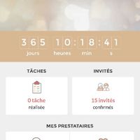 Il y a 3401 joursMariage le 28 octobre 2017 point sur les préparatifs:Traiteur salle menu réservé repas test le 27 janvierPhotographe réservé accompte versé DJ réservé Dossier mairie retiré date bloquerEglise et réunion préparation bloquerFaire part sous enveloppes...