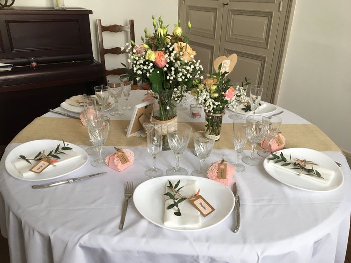 Bonjour à toutes et tous, bon aujourd hui journée test table avec les fleurs qu’en pensez-vous? Et pour les fleurs 3 bouquets ou que 2? merci par avance 😘