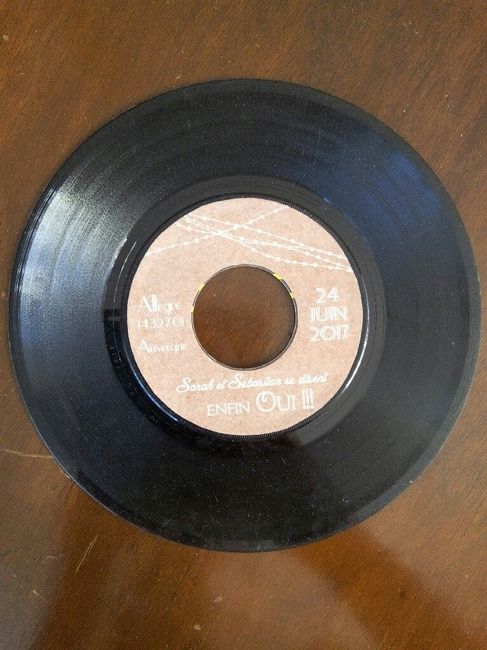 Bonjour à toutes,Avec pas mal de retard, je vous montre le verso de nos faire-parts en vinyles.Du coup, je remets le recto aussi ^^