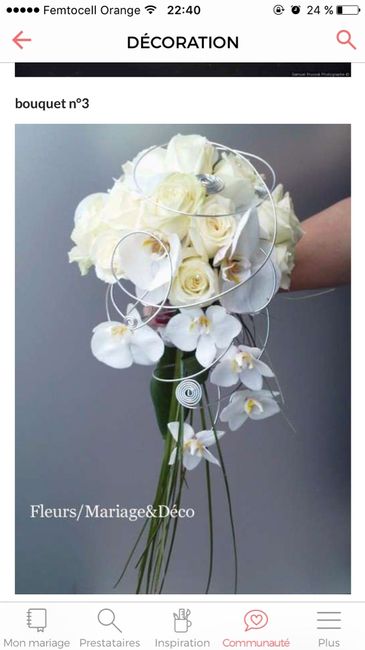 Bonsoir, voilà je me marie le 27 mai 2017 et je suis à la recherche d'un fleuriste pour mon bouquet, je vous met le style de bouquet que j'aimerai . Si vous avez de bonnes adresses à me communiquer je suis preneuse.... bon courage pour vos...
