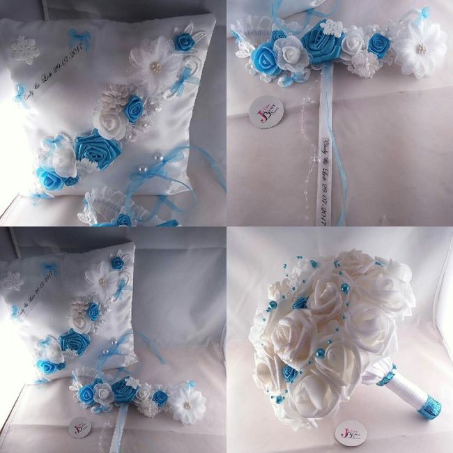 Whoouaaa je suis RA-VIE !!! J'ai reçu ma jarretière, mon coussin d'alliance et mon bouquet à lancer (que je ne veux plus lancer d'ailleurs tellement je le trouve magnifique)