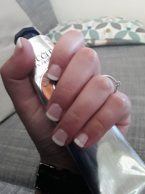 French manucure faite a J-3. Elle est top comme je la voulais simple et classe. La pression commence a monter, il reste quelques details à régler mais j'essaye de rester zen.