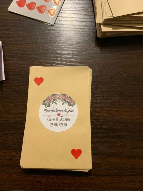 Bonjour tout le monde, J'ai besoin de vos conseils sur les pochettes larmes de joie... j'ai reçu tout le nécessaire pour les faire : pochettes blanches et étiquettes personnalisées. Mais voilà en essayant pour voir ce que ça donnait, je suis assez...