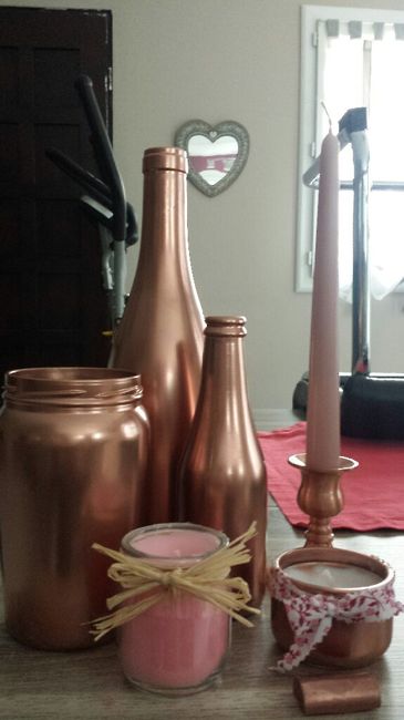Coucou , voici un essai centre de table, non disposé comme il faut et sans les fleurs dans les contenant, prochain essai fil de cuivre à la place du raphia et autre essai avec de la cordelette ... il y ya aussi mon essai repose couteau (bouchon de...