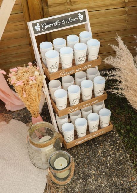 Bonjour à tous, Nous sommes dans la fin des préparatifs et souhaitant gâter nos invités, nous avons fait des gobelets personnalisés. Afin de les mettre en valeurs, nous souhaiterions fabriquer une étagère pour gobelets comme sur la photo. N'étant pas...