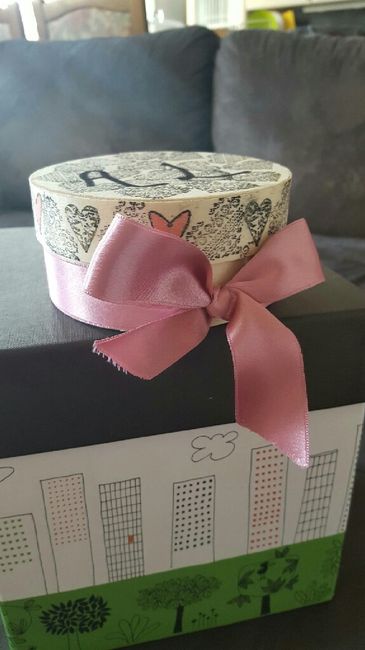 Voilà j'ai customisé une boîte à camembert en bois! avec des tampons, un ruban, des pétales de roses en tissus. une idée de chéri !