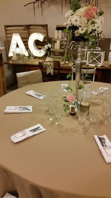 Voilà mon essai de table du jour... Complètement satisfaite du rendu !!! Les fleurs seront fraîches par contre. Mon thème est champêtre chic. A vos claviers pour vos avis. Il n'y aura pas de chemin de table pour ne pas surcharger l'ensemble et notre...