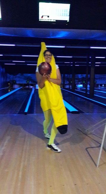 Et voila... mon evjf est passé !!!! Hier ma témoin et belle soeur débarque a la maison a 17h et ni une ni deux... me donne le même costume banane que mon cher et tendre avait porter pour son evg !!! Comme ça, on faisait une belle brochette de banane...